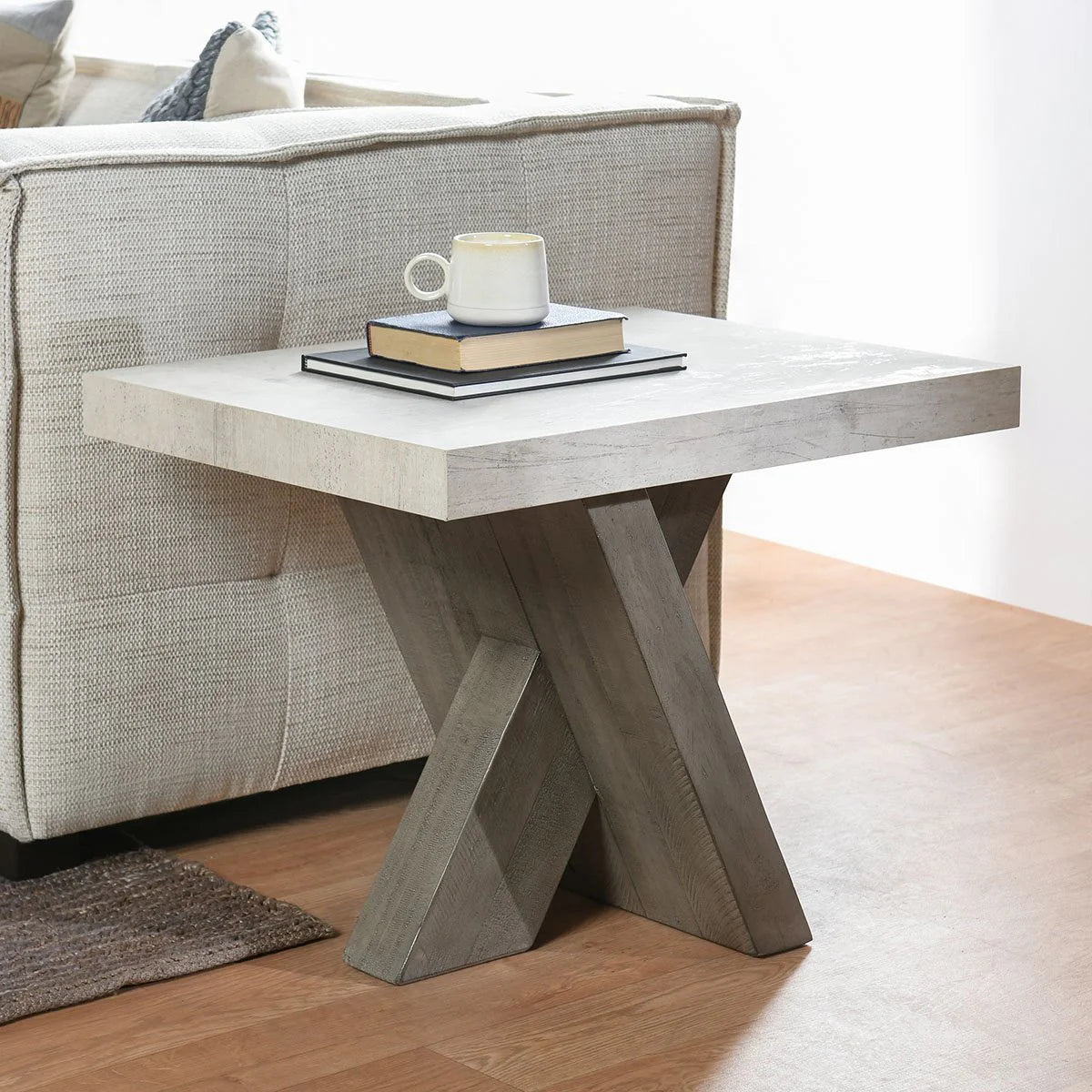 The Durant Occasional Set features sustainable reclaimed pine with FSC certification, combining a modern concrete-inspired surface with industrial detailing. Its clean lines and durable construction make it a versatile choice for stylish and functional living spaces.