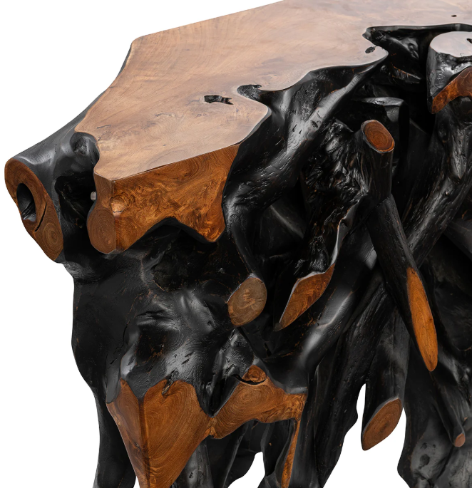 Cypress Teak Root Console Table 70- 71" - Black-Brown