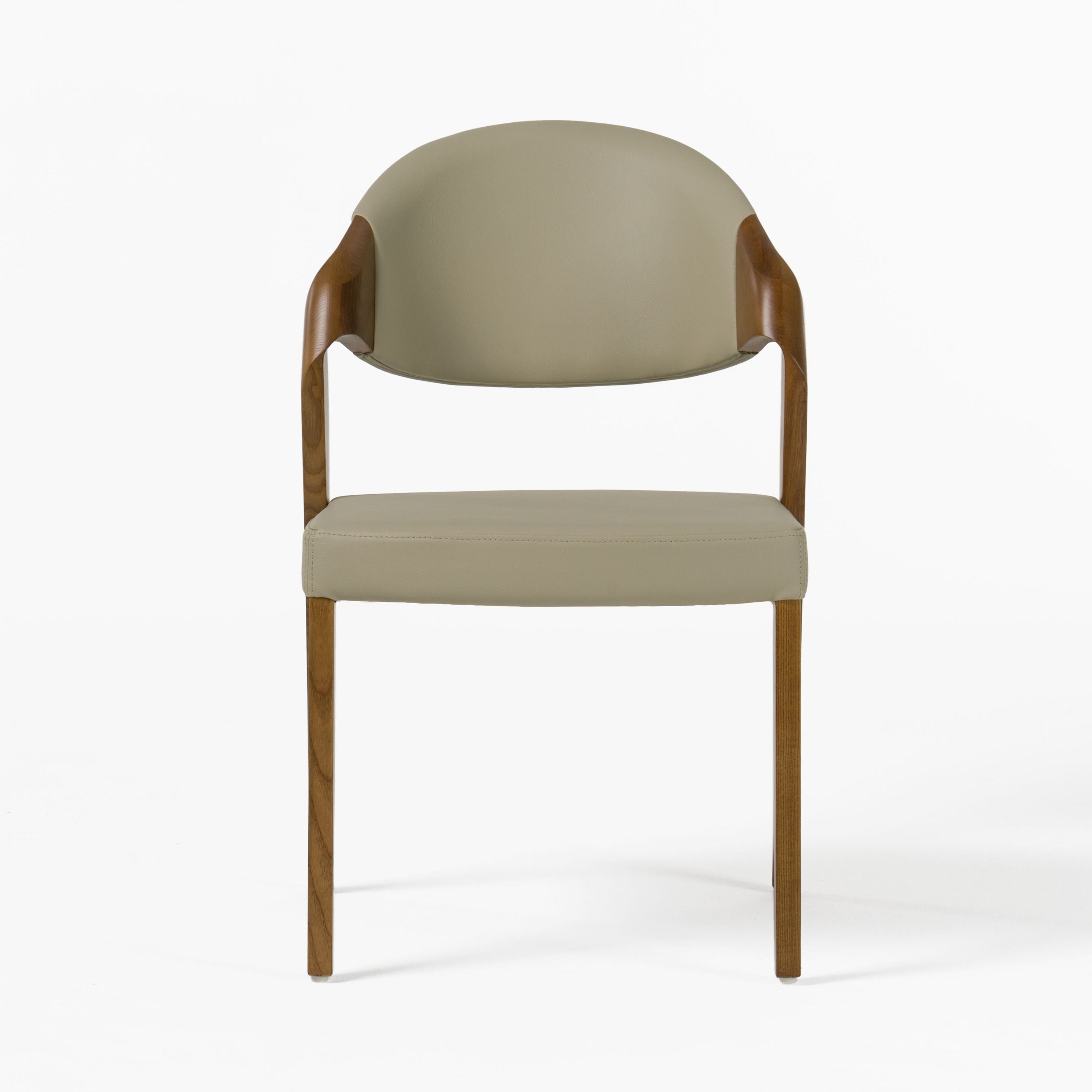 The Arlo Dining Chair is the perfect mid-century style dining accessory for your space. The tapered walnut ash wood frame is right out of the mod movement, perfect and timelessly executed. Beige vegan leather upholstery stretches across the stylus seat and back, creating contrast and comfort. Pair with one of our lovely walnut tables for a perfect match.