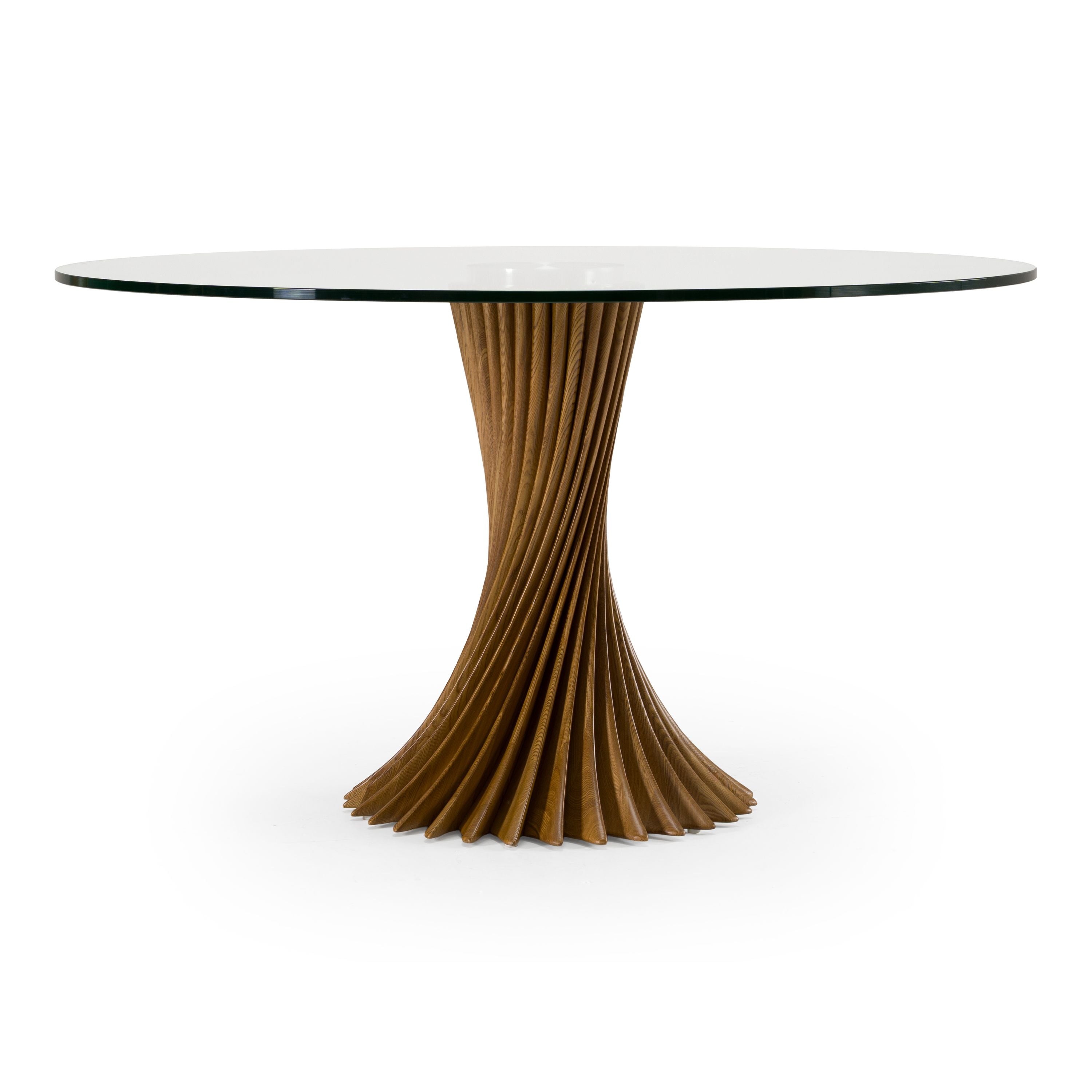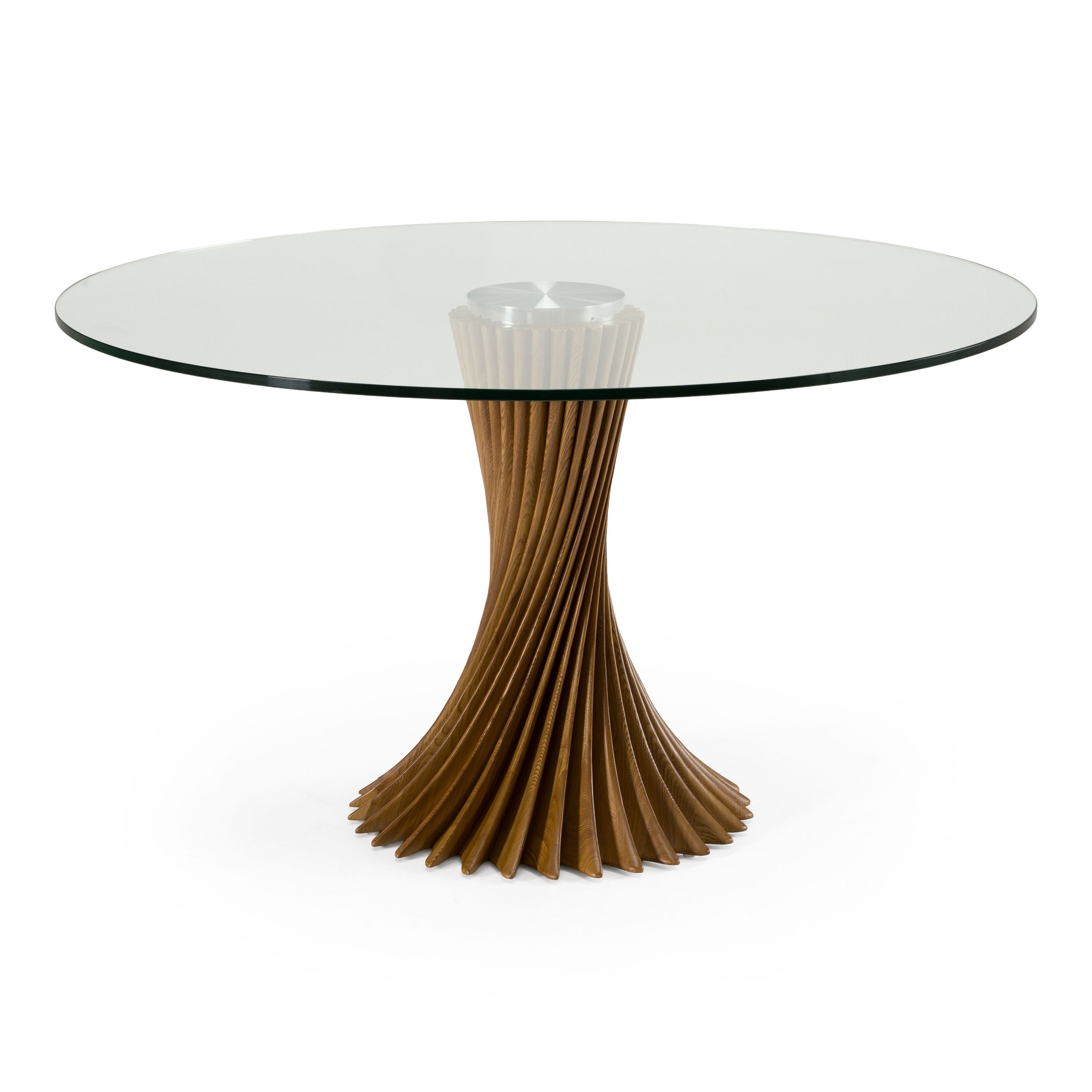 Modrest Ocasio - Modern Glass + Walnut Round Dining Table