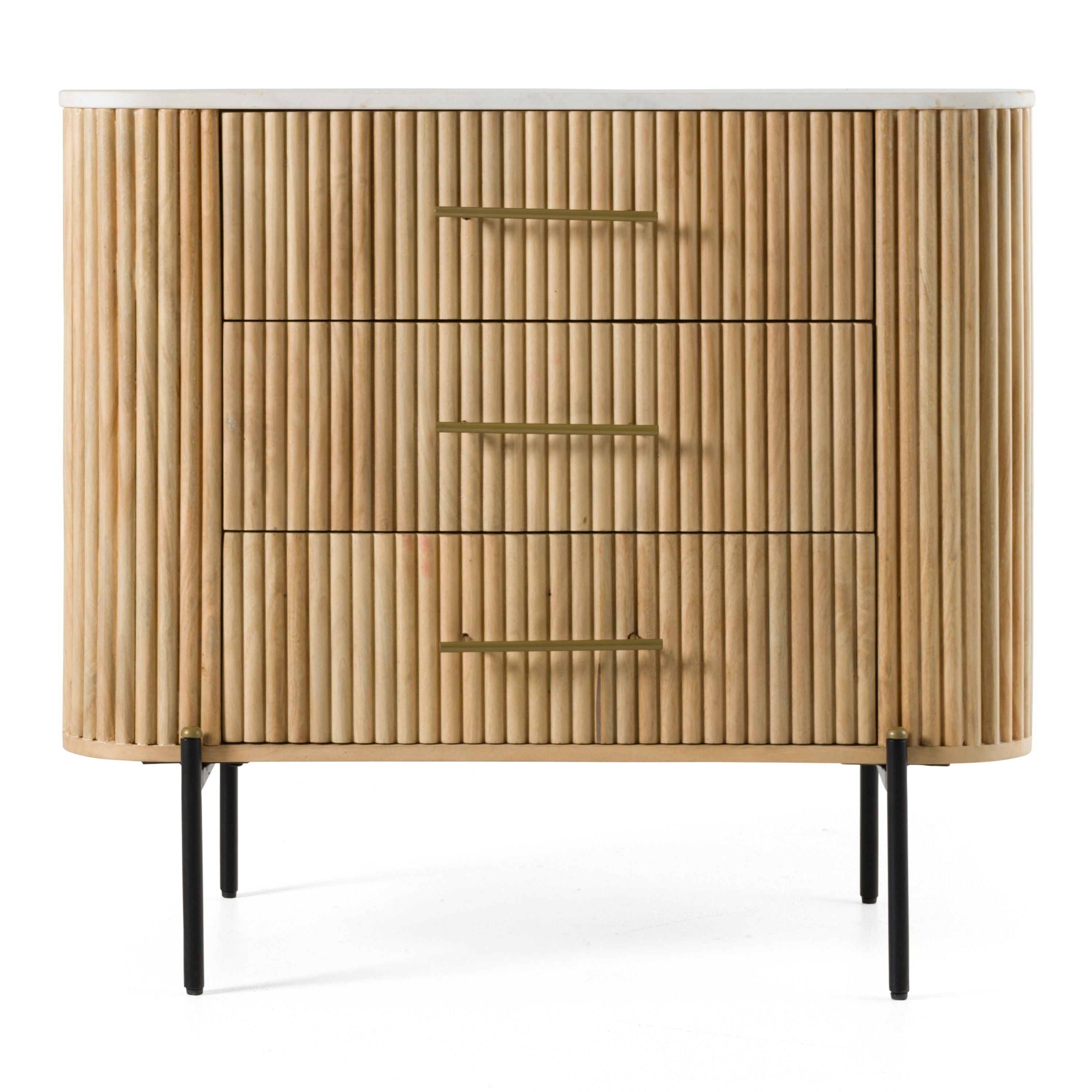 Modrest Cambridge - Modern White Marble & Washed Mango 3 Drawer Dresser