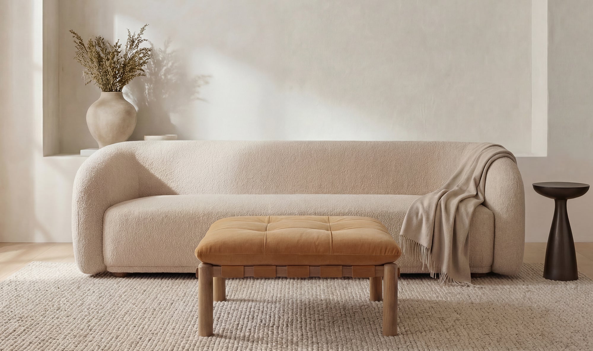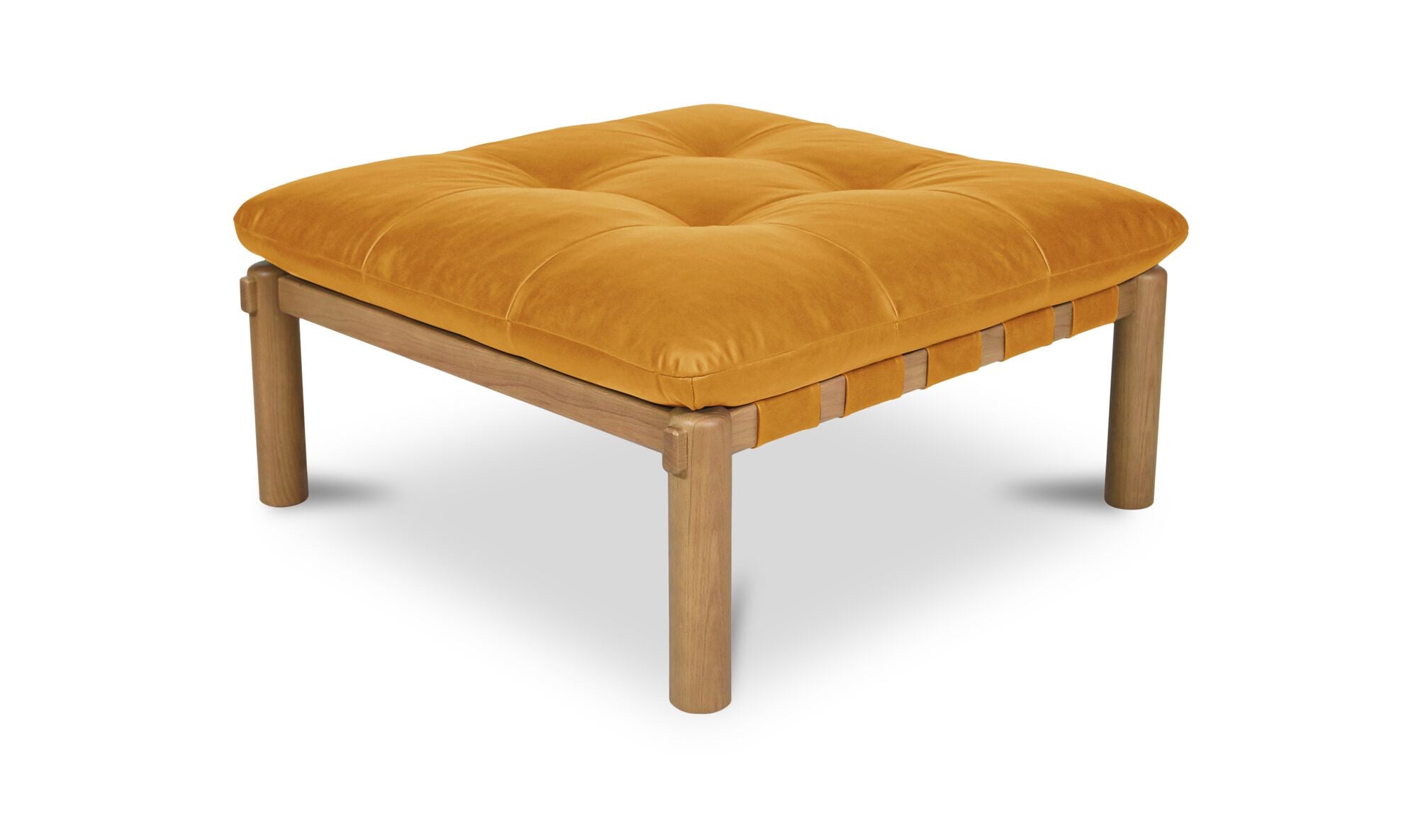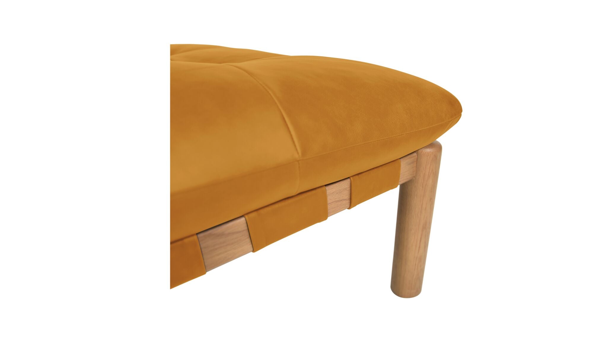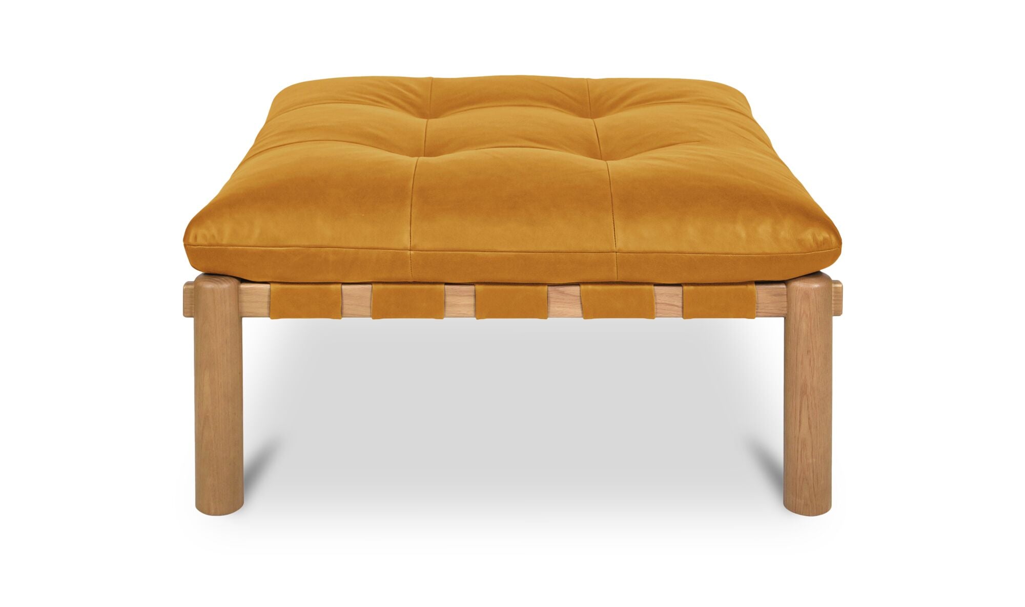 When the materials steal the show. The Costello Ottoman puts material first with a solid oak frame and top-grain leather seat that softens over time. Tuft detailing, rounded legs, and leather-wrapped straps highlight its craftsmanship. Feather-and-fiber cushioning adds comfort without compromising structure. Equal parts modern and timeless, Costello lets the materials do the talking.