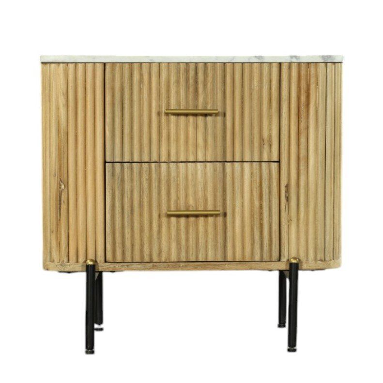 Modrest Cambridge - Modern White Marble & Washed Mango 2 Drawer Nightstand