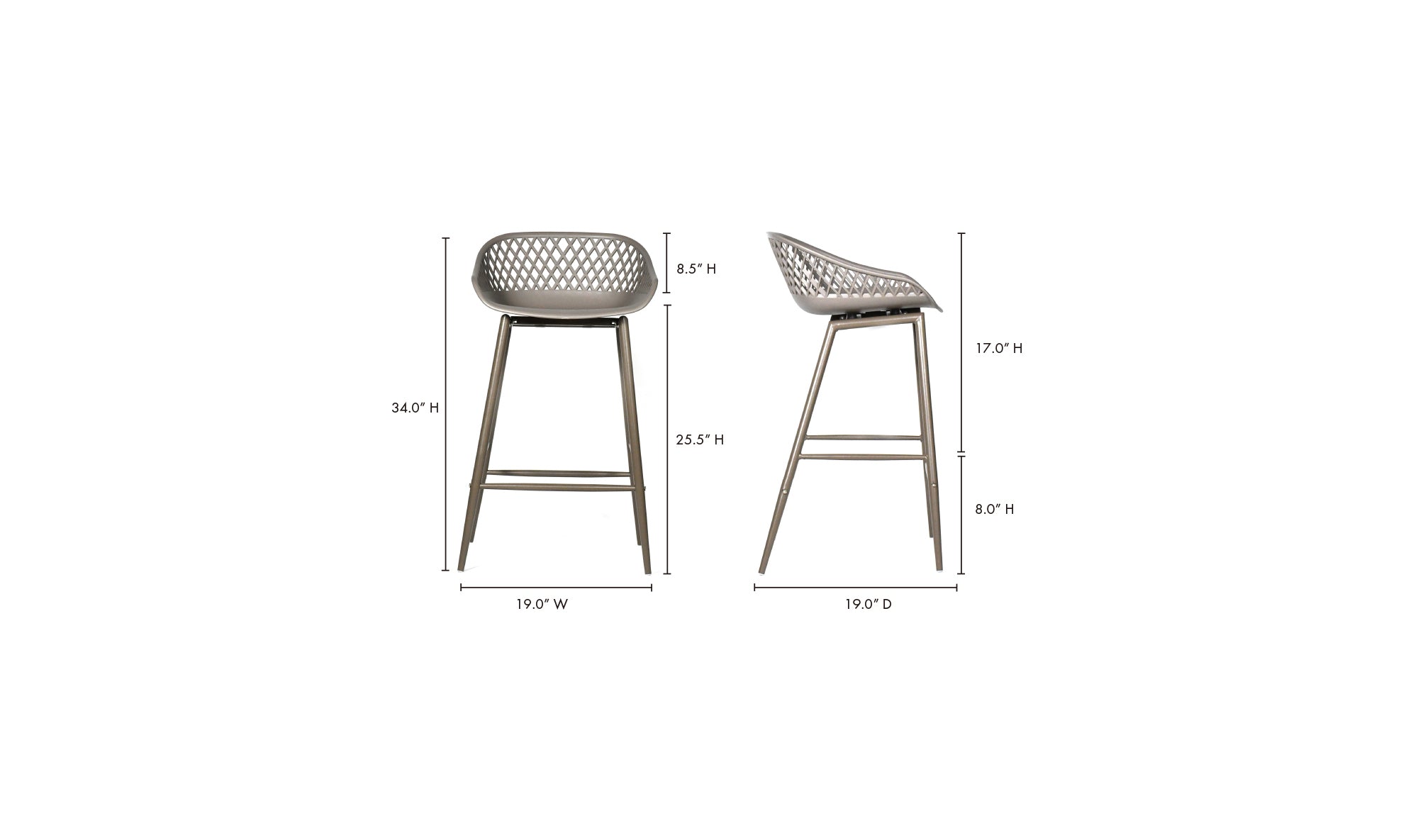 Patio perfection. With a curved seat, the Piazza counter stool is like a basket of comfort for summertime bliss. A diamond mesh back made with durable polypropylene and sleek tapered legs provide this stool’s contemporary charisma, while a built-in footrest keeps things breezy. Available in two colors, pair this counter stool with others from the Piazza collection for a true outdoor oasis.