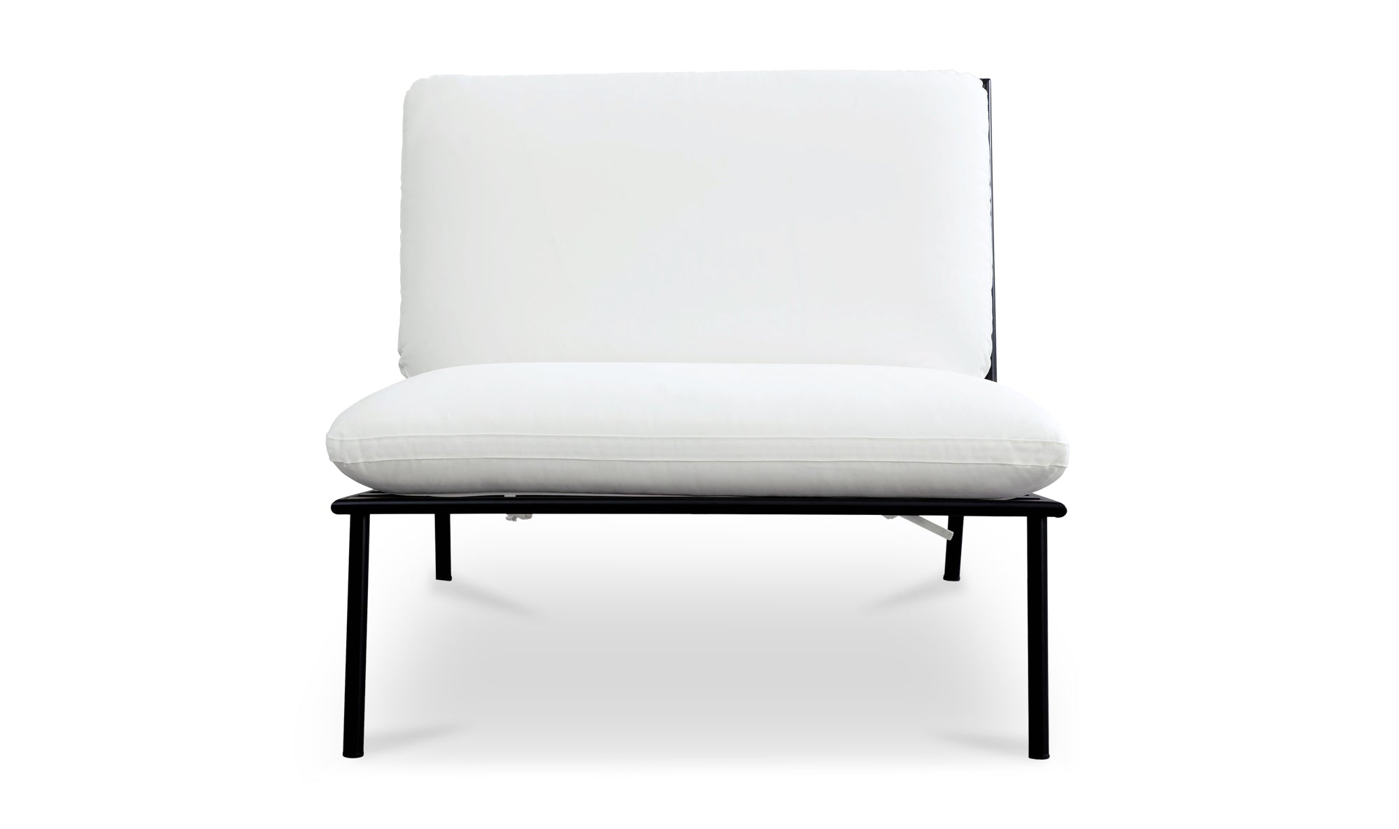 The Salma outdoor accent chair's armless design includes quick-dry foam cushions covered in 100% Olefin fabric that resists fading and includes ties for stability. It features a durable stainless-steel frame with elegant crisscross detailing. This piece combines superior comfort with exceptional weather resilience, making it perfect for outdoor use.