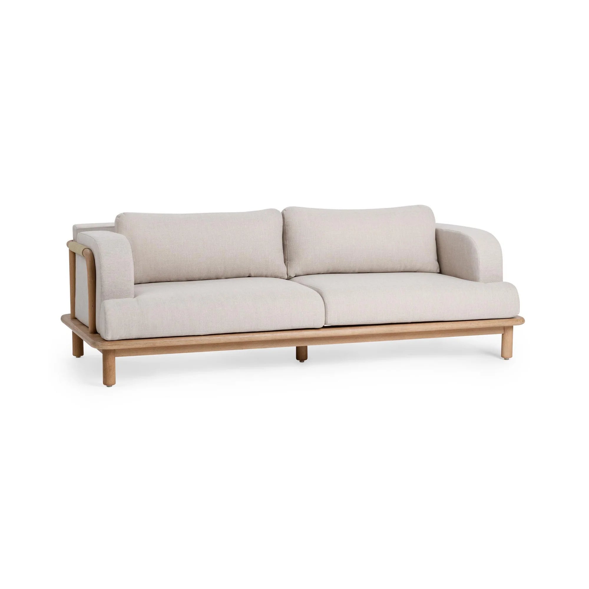 Designed for effortless outdoor lounging, this inviting sofa combines comfort and natural style. A solid eucalyptus wood base creates a warm, grounded foundation, while subtle rope-wrapped details add texture and craftsmanship. Generously sized cushions upholstered in durable 100% polyester offer plush support for relaxing afternoons and evening gatherings. With its clean lines and soft neutral tones, this sofa transforms patios, terraces, and covered outdoor spaces into a refined retreat.