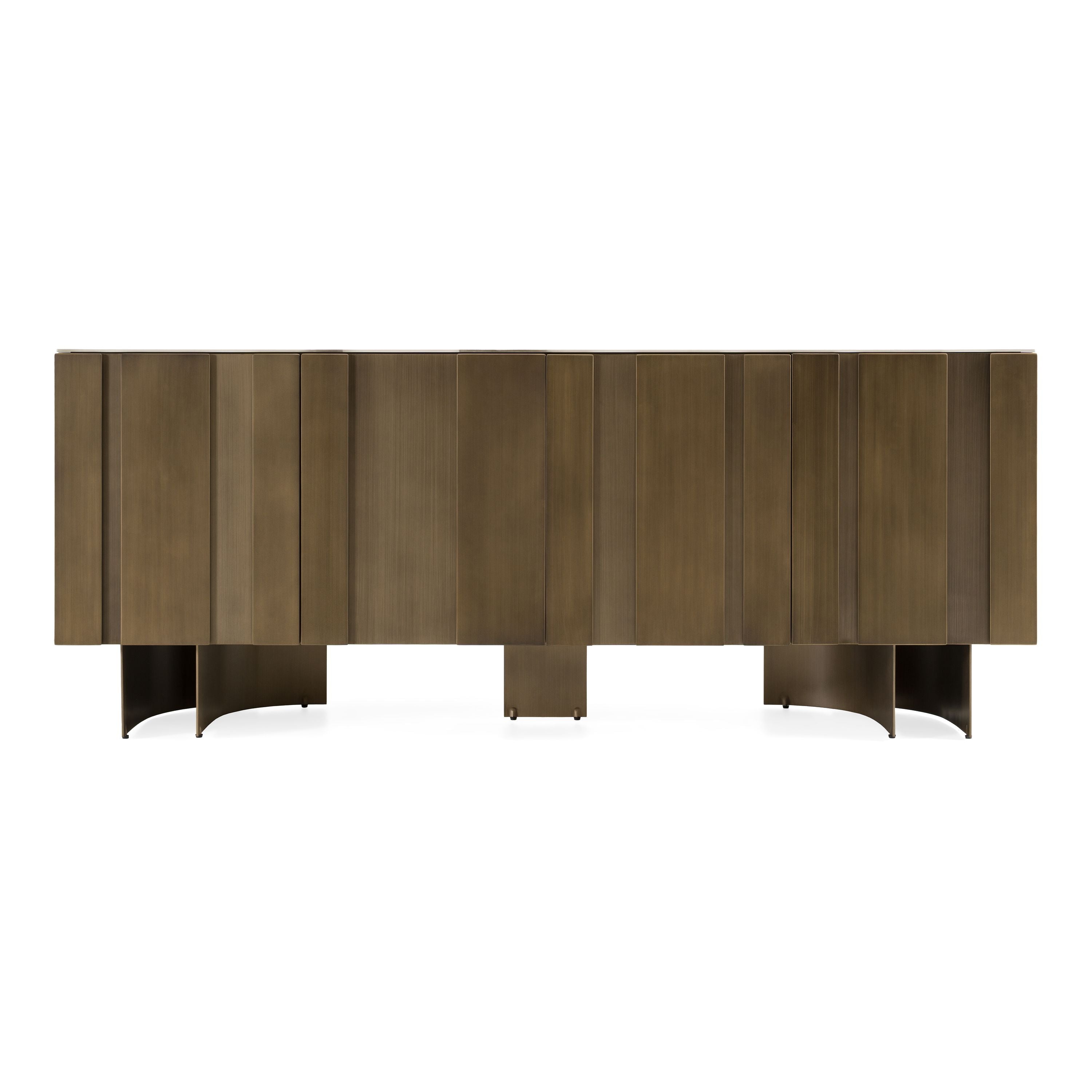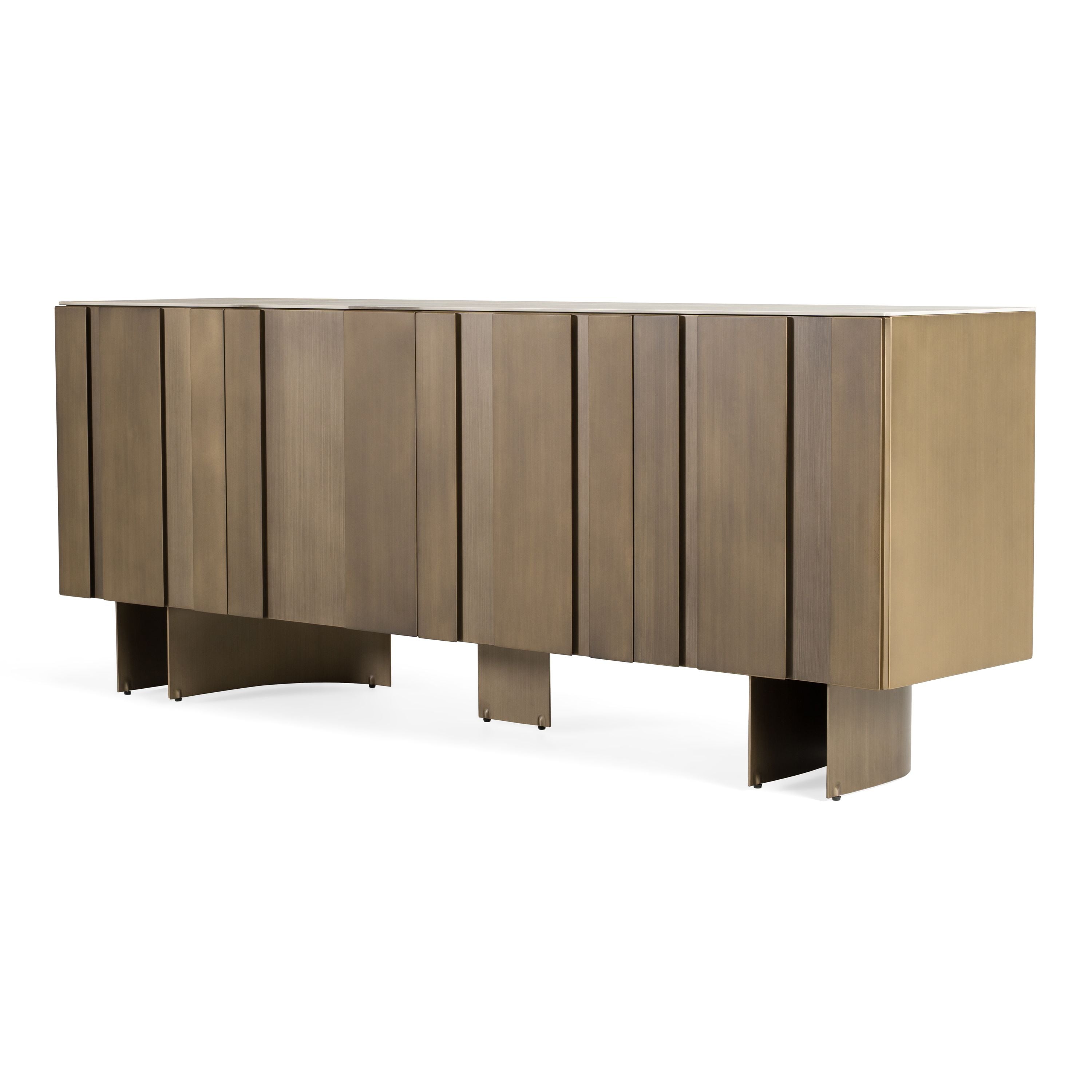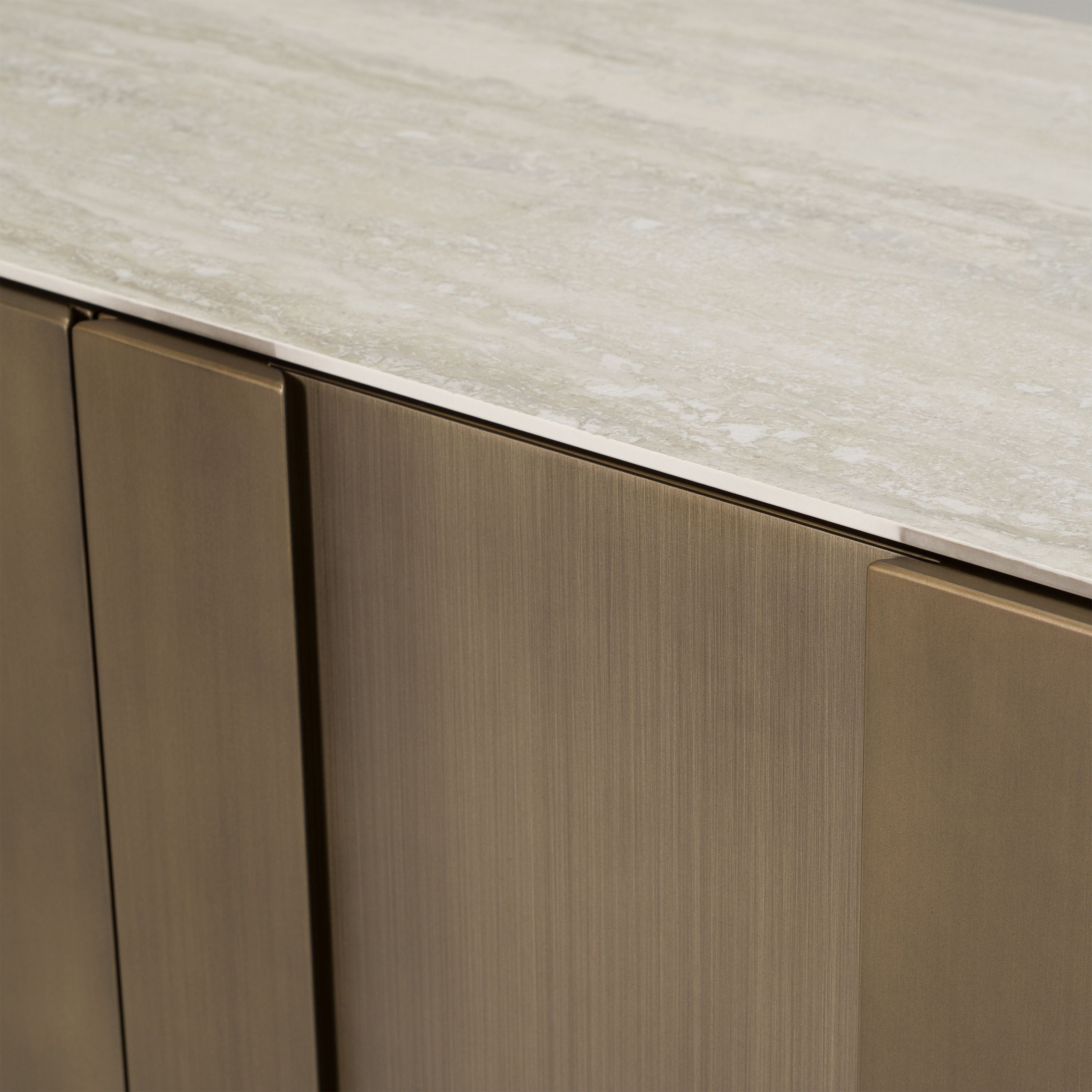 Lamod Kiefer - Modern Faux Travertine Ceramic + Bronze Buffet