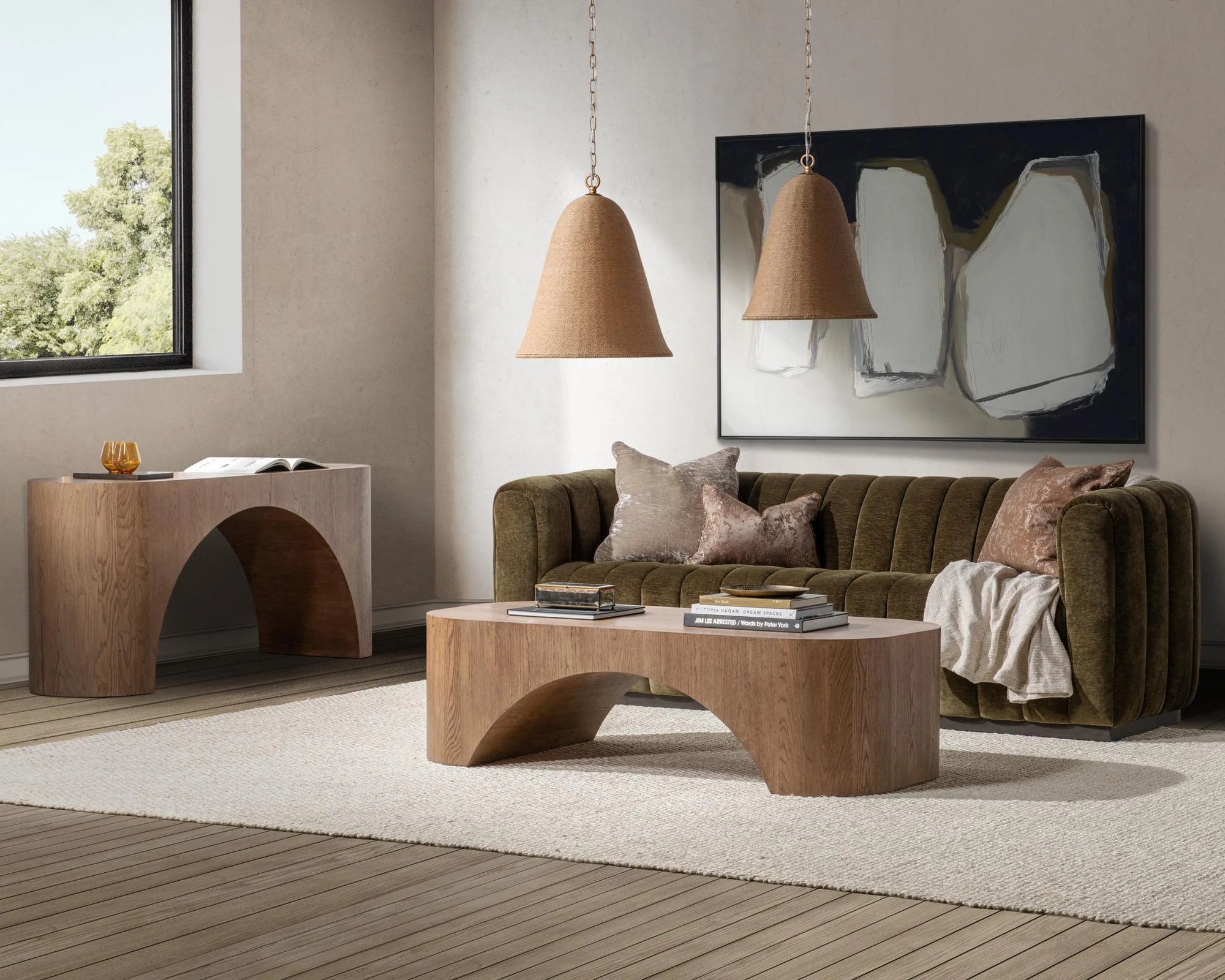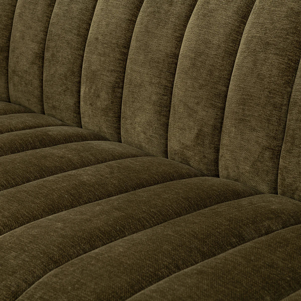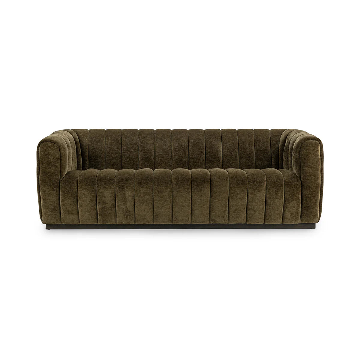 Make a bold statement with the Vanty Sofa, blending sumptuous polyester fabric with a wood plinth base for lasting durability. The bench seating design provides an inviting space for lounging in style. Elevate your living room with this vibrant yet refined sofa. Available in Bronze and Olive Green.